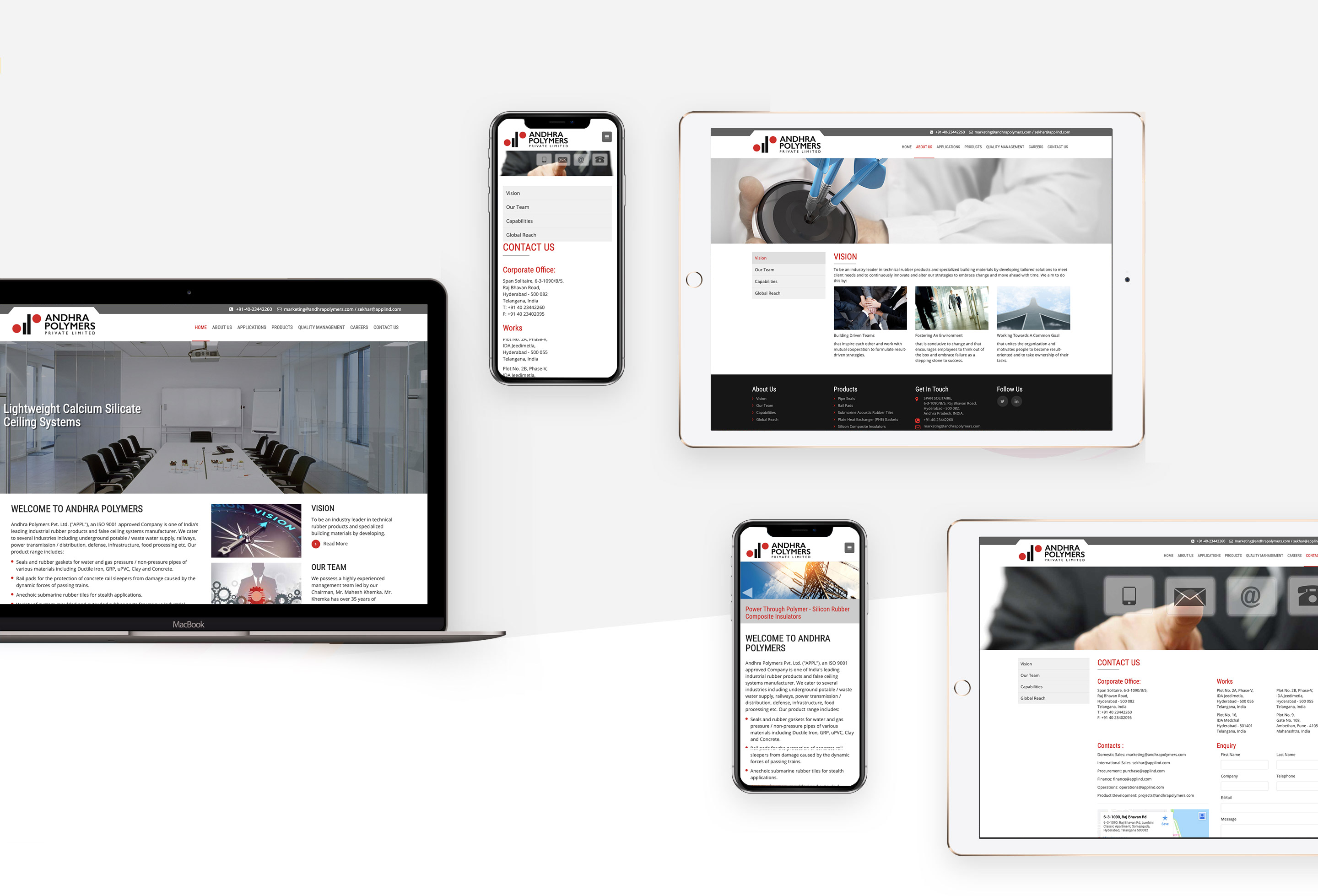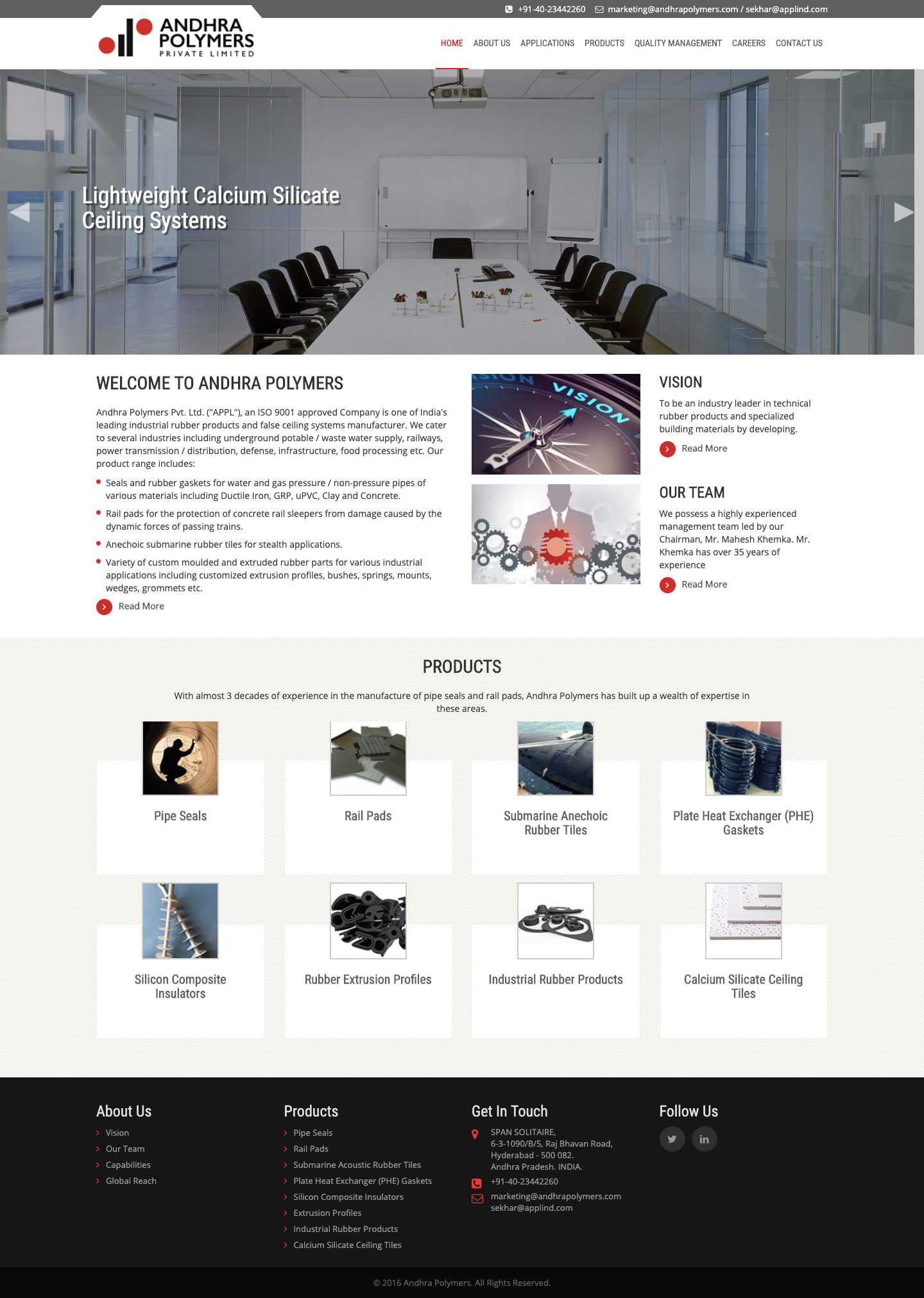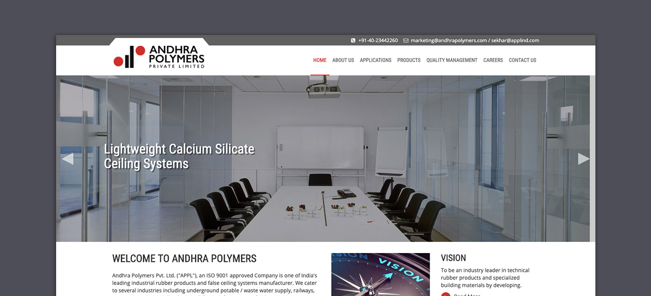 India's leading industrial rubber products and false ceiling systems manufacturer, Andhra Polymers approached us to build them a website. We realized that we need to help them showcase their product range and the wide array of services they offer through their website.