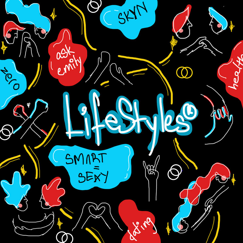 We made a mock sketch with some words that represented Lifestyles and used bold, bright colours. And then, we took the best out of the mock sketch, added more elements and came up with this idea.