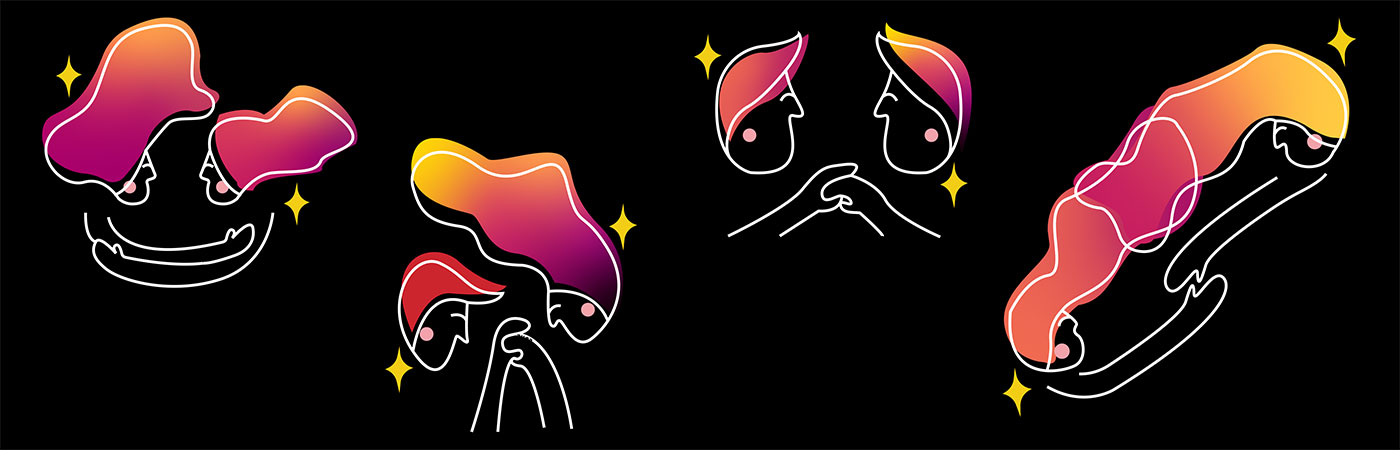 Gender neutral characters reach out to each other with their hands. This symbolises all forms of relationships between humans, not just romantic.